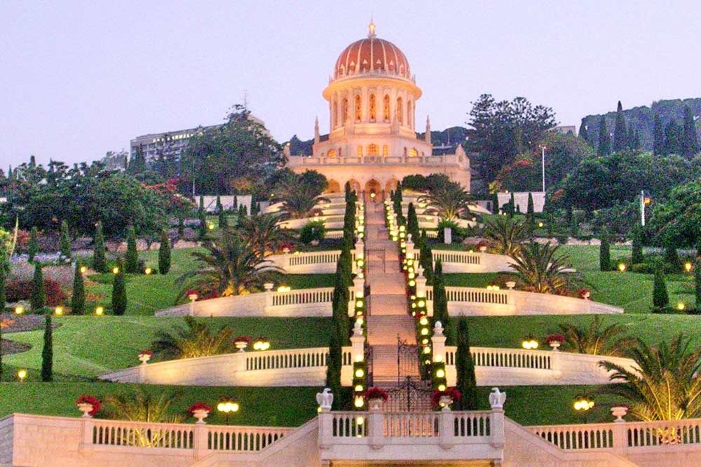 На склоне горы Кармель на 18-ти террасах сооружено произведение ландшафтного искусства. Множество цветников, причудливой формы кустов, газонов и вазонов с красочными цветами создают удивительный пейзаж, завораживающий дух.